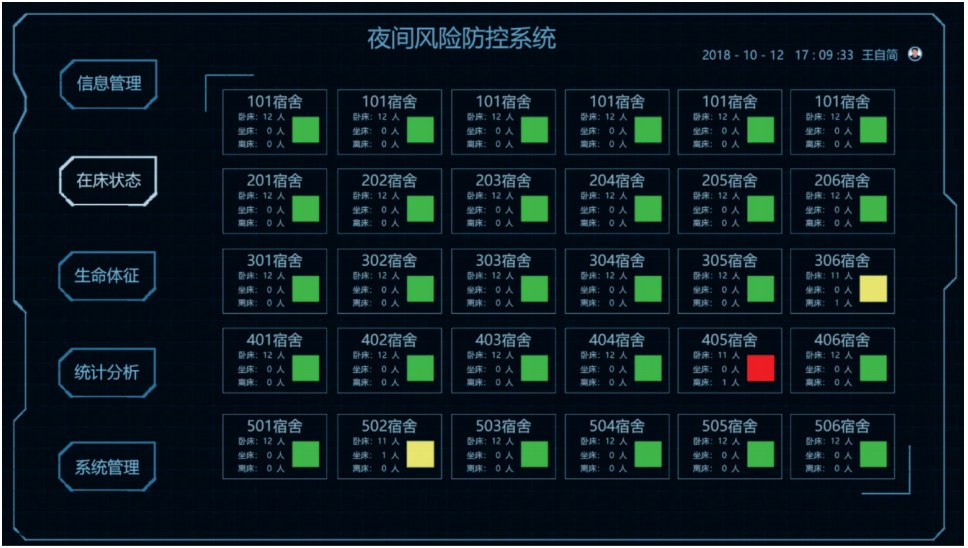 神州科技夜間風(fēng)險防控系統(tǒng)通過對床位配備的智能監(jiān)倉感知裝置,實時監(jiān)測罪犯的在床狀態(tài)及生命體征,發(fā)現(xiàn)異常及時自動警報,一旦罪犯在夜間出現(xiàn)任何突發(fā)疾病或者突發(fā)狀況,智能監(jiān)倉感知裝置會第一時間監(jiān)測到身體產(chǎn)生的變化,并及時警報告知值班警察,有效提升夜間防控安全系數(shù),降低風(fēng)險。