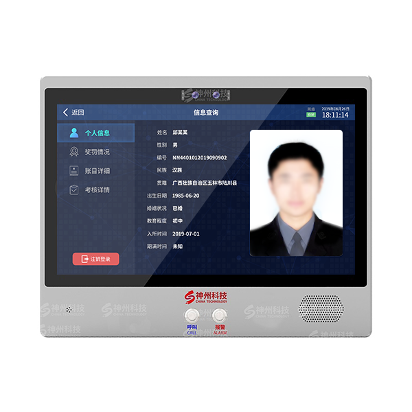 10.1寸觸摸一體式設計,集成公安部二代身份證指紋儀及人臉識別攝像頭,內(nèi)置指紋+人臉識別防誤放系統(tǒng)軟件.